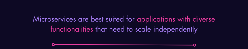 Microservices are best suited for applications with diverse functionalities that need to scale independently. These systems typically evolve from monolithic architectures that become unwieldy as applications grow. For instance, an e-commerce application might start as a monolith but eventually need to split into separate services for inventory management, payment processing, and order fulfillment to handle increased demand efficiently.